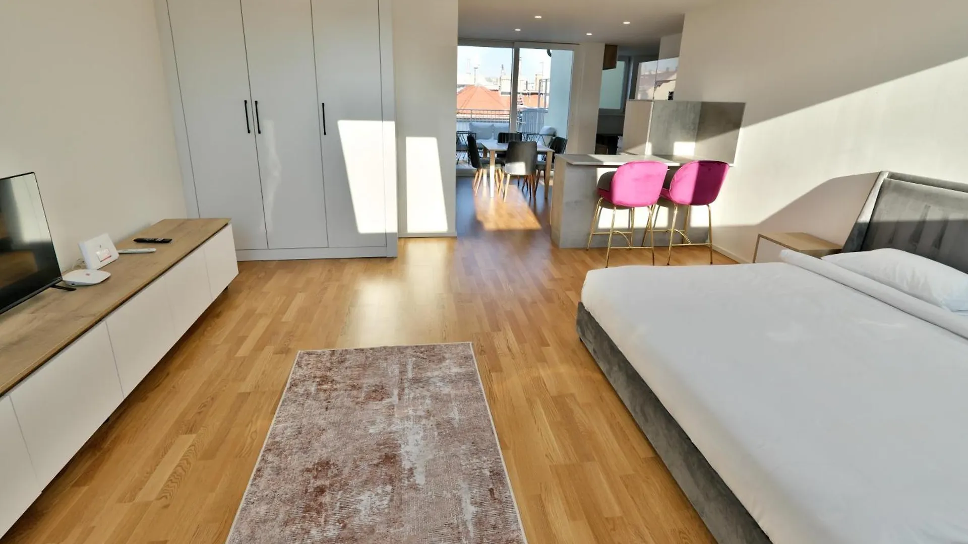 Интерьер дополнен письменным столом, а также такими удобствами, как телевизор с плоским экраном и спутниковыми каналами, многоканальное телевидение. В вашем распоряжении балкон, терраса и зона отдыха. В числе удобств есть детекторы дыма и электронный ключ. Также предоставлены перьевые подушки. Апартаменты предлагают собственную ванную комнату с отдельным туалетом, ванной и душем. Кроме того, предоставляется фен и полотенца.